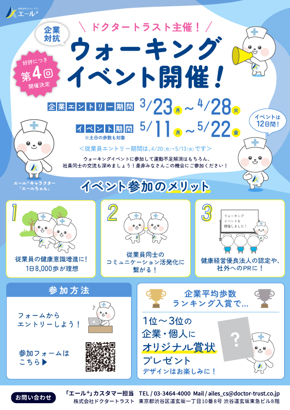 健康管理システム・アプリ「エール+」では、第4回企業対抗ウォーキングイベントを開催します!