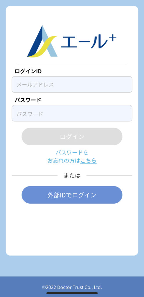 アプリを起動し、すでに登録してあるログインID(メールアドレス)とパスワードを入力してください。