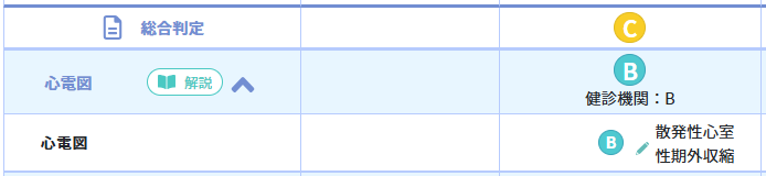 未判定項目の健診結果が修正されたことで、総合判定が変更されました。
