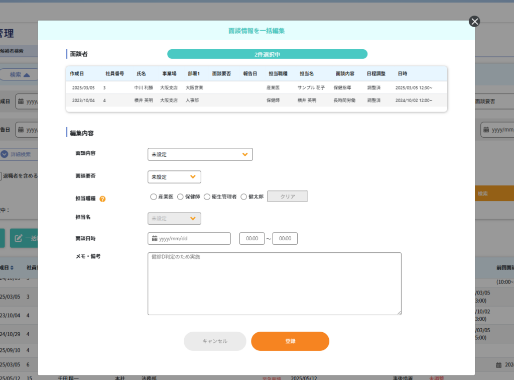 面談予定者を編集する(一括)