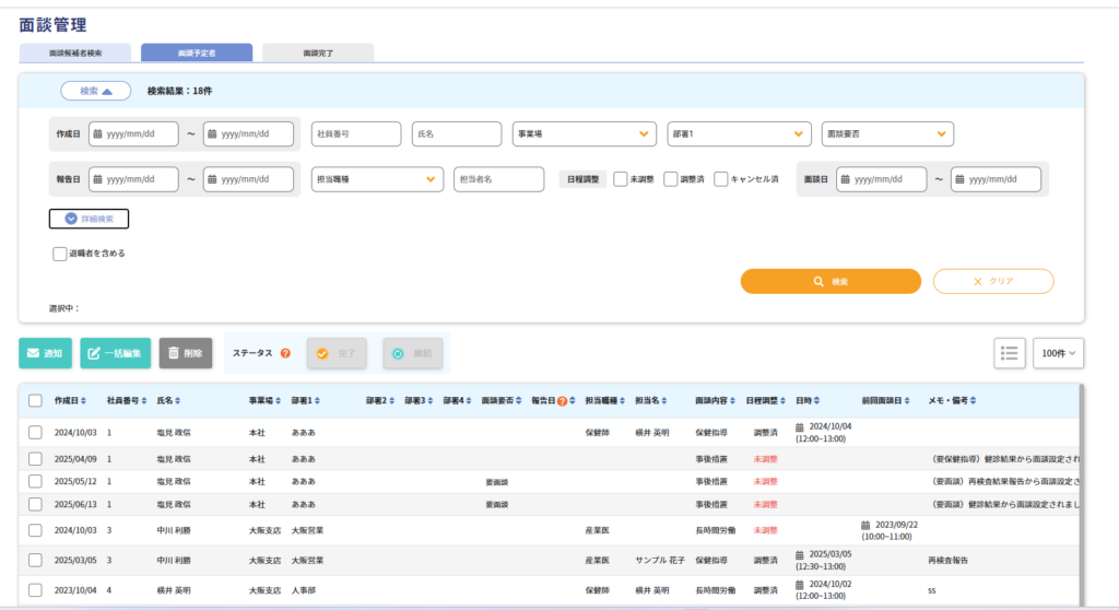 「面談予定者」タブをクリックします。