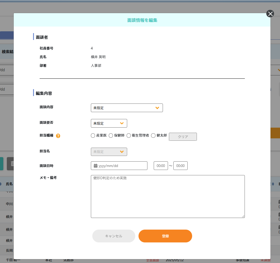 「面談者情報を編集」ウィンドウが開きます。