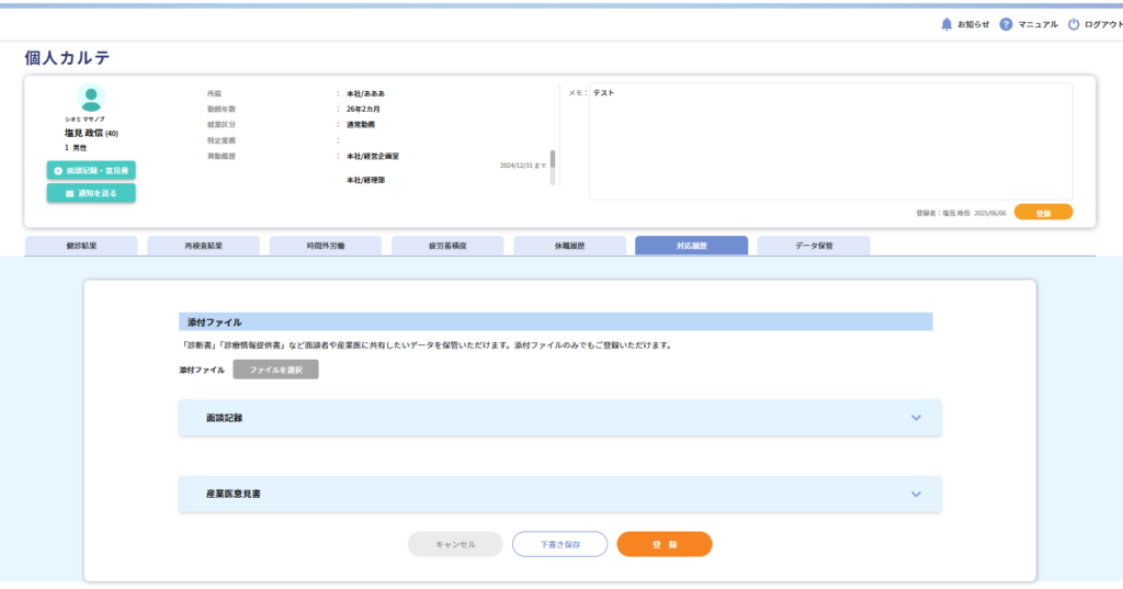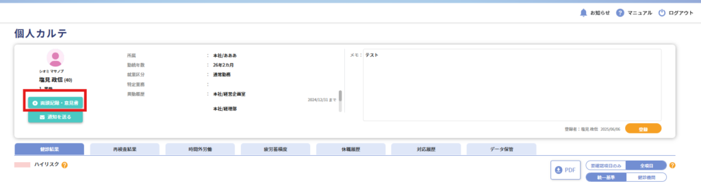面談記録作成/編集した際は衛生管理者に通知が届きます。