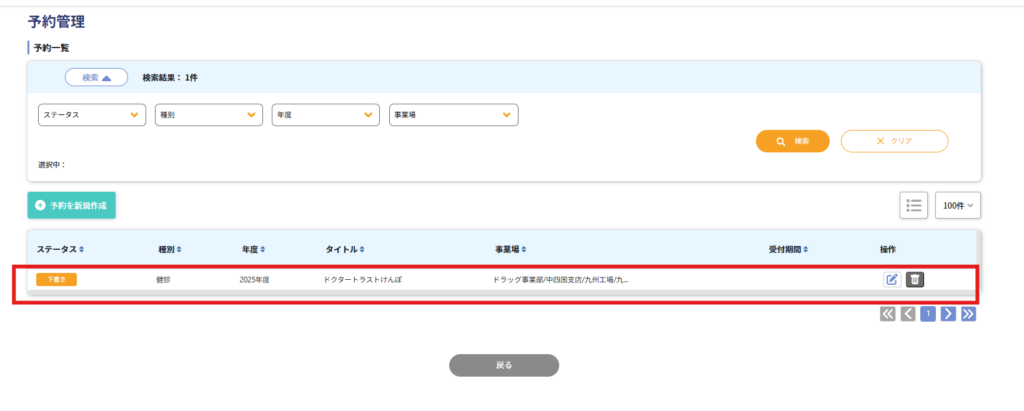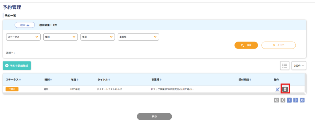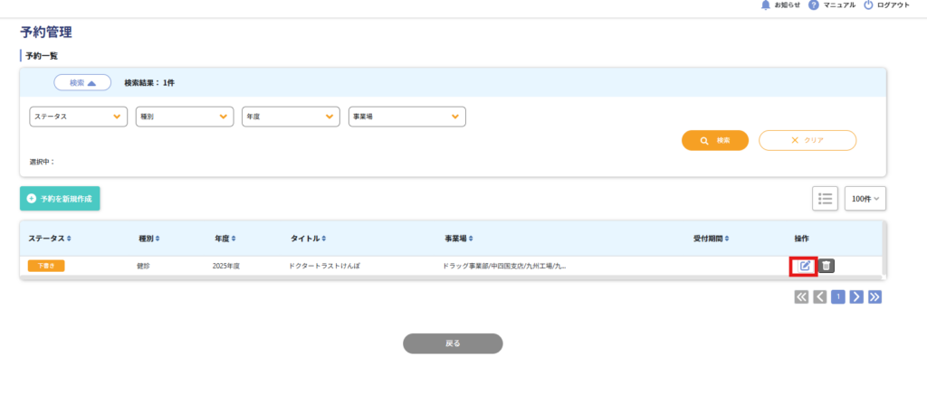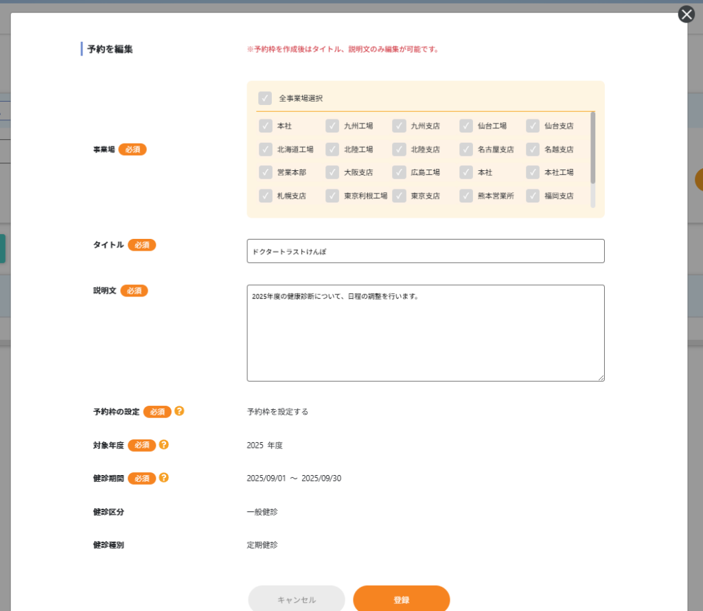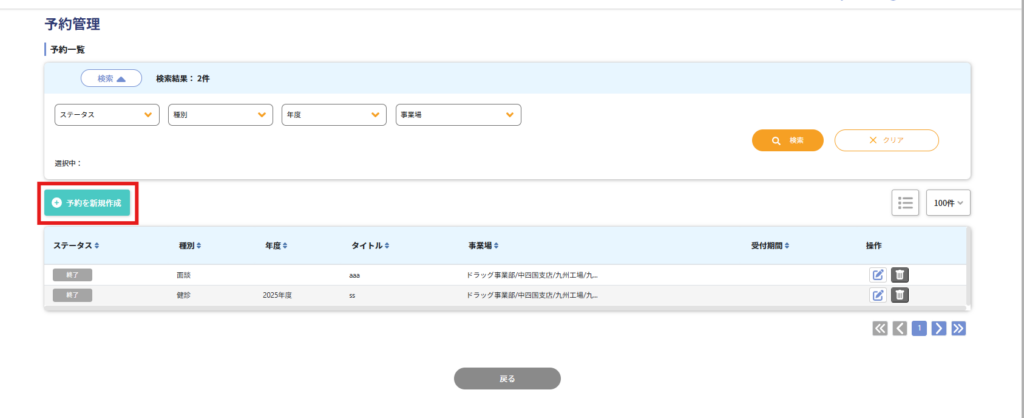 ※同一年度に同じ事業場の予約は作成できません。 - タイトル