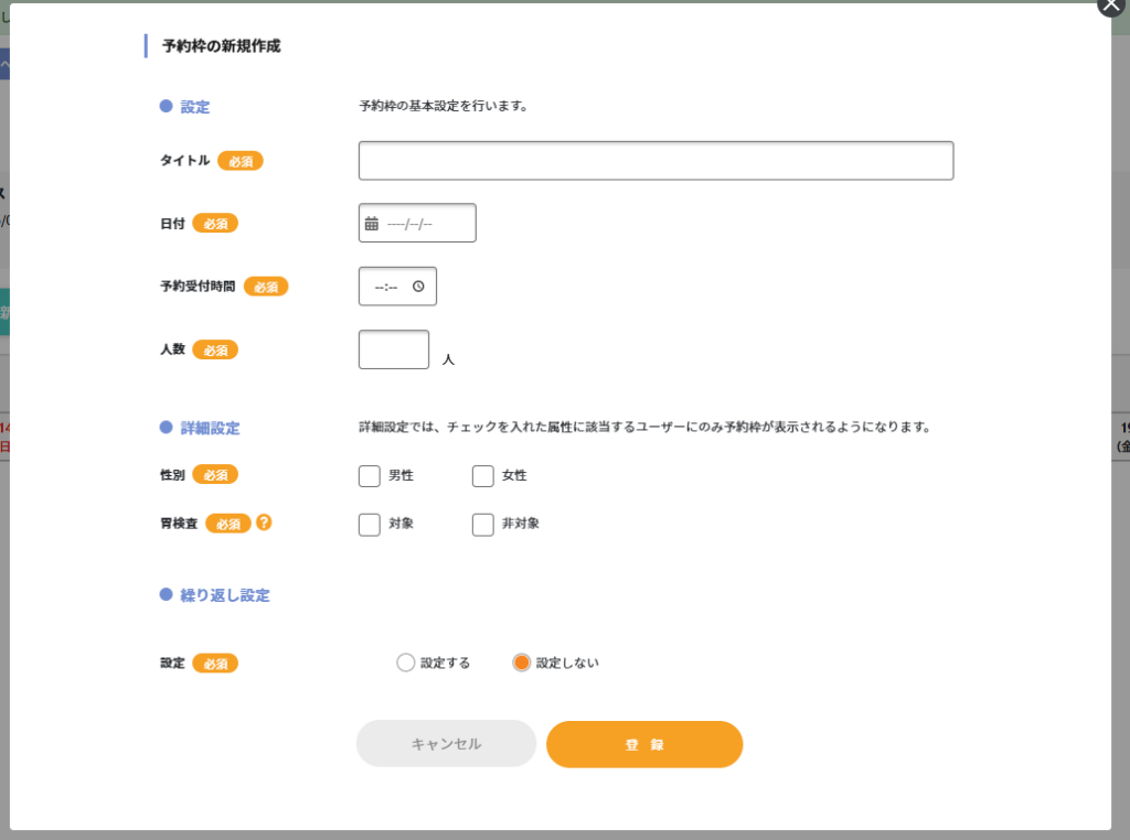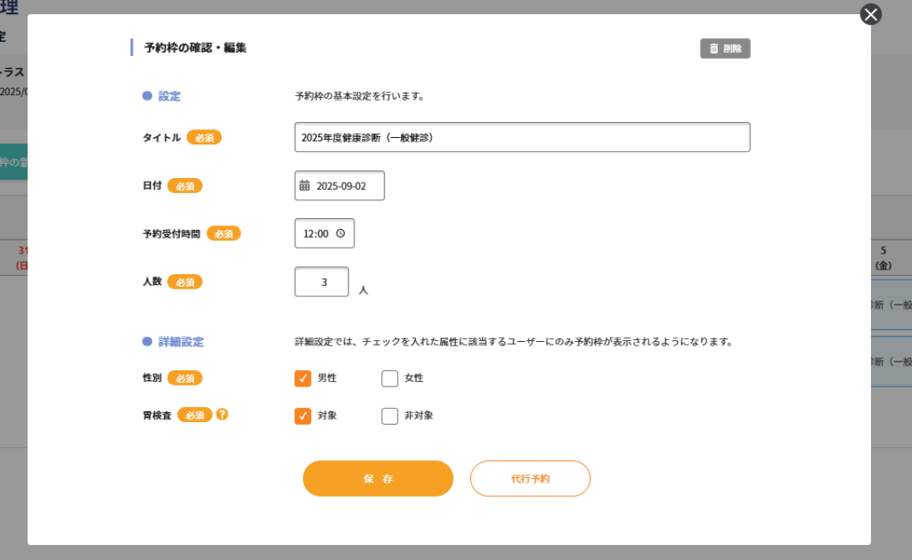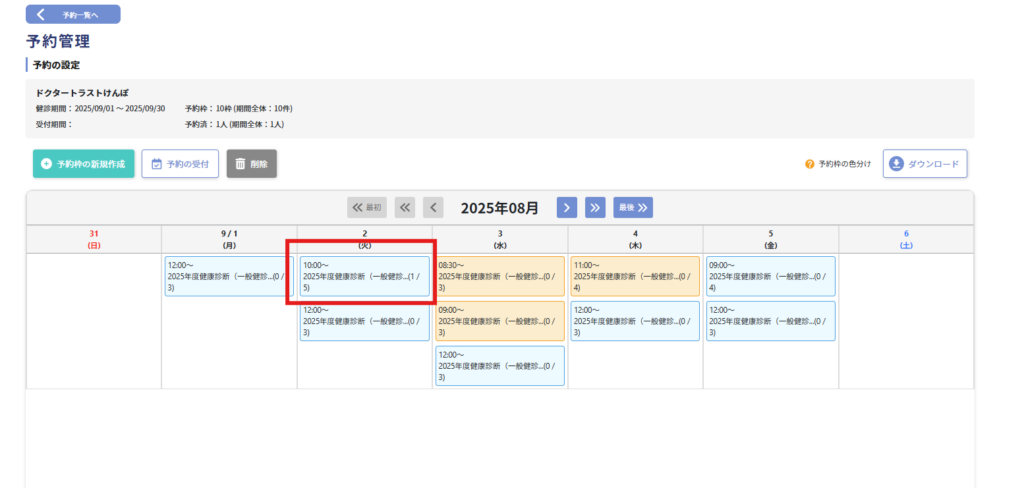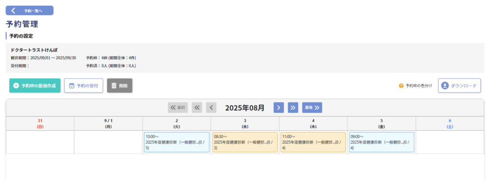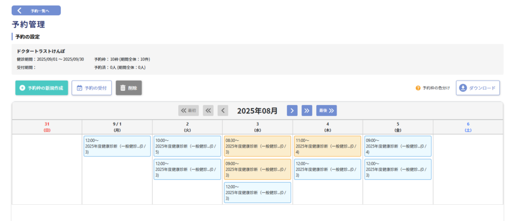 健診機関で確保した予約枠に応じて予約枠を作成します。