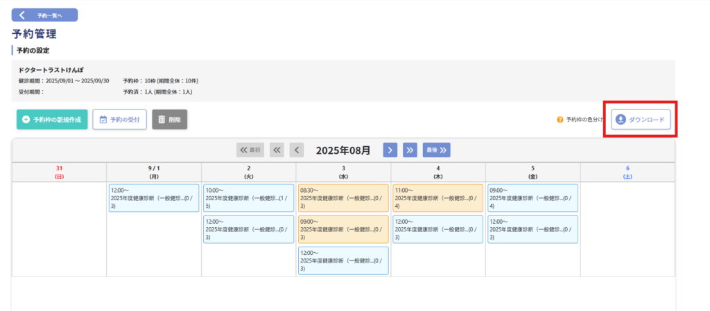 以下のボタンをクリックすると、予約枠や予約状況のデータをダウンロードできます。