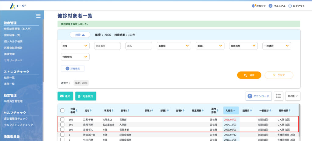 健診対象が設定されました。