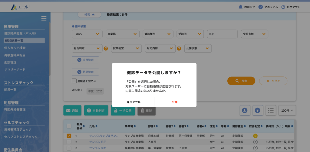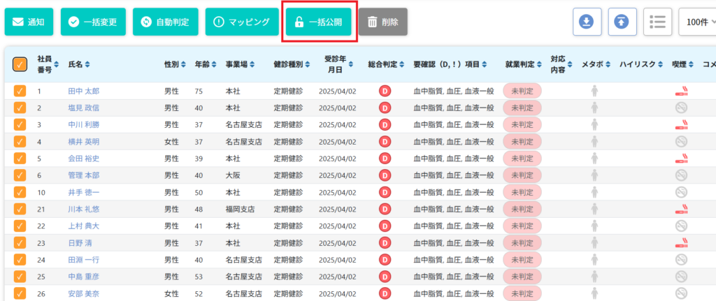 ​健診結果をアップロードすると「未公開」状態で登録されます。利用ユーザーへ健診結果を公開したい場合は、公開手続きを行いましょう。