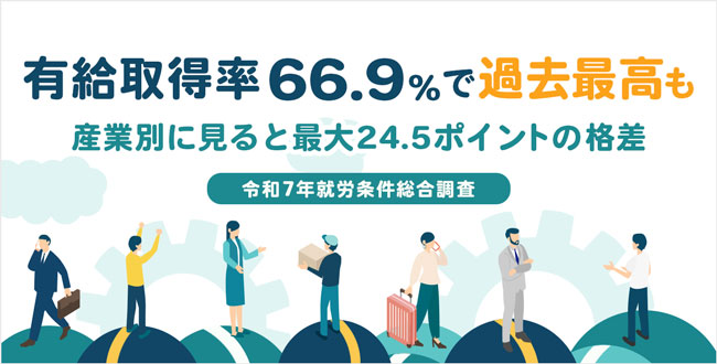 有給取得率66.9%で過去最高も、産業別に見ると最大24.5ポイントの格差──令和7年就労条件総合調査