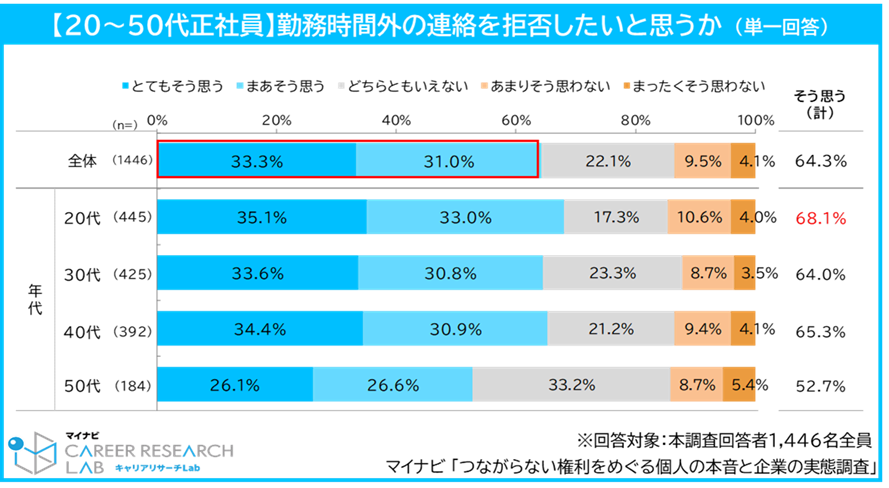 出所:マイナビキャリアリサーチLab「つながらない権利をめぐる個人の本音と企業の実態調査」