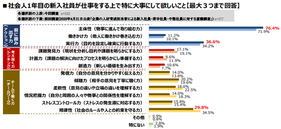 調査では、企業が新入社員に求める能力についても質問が行われました。